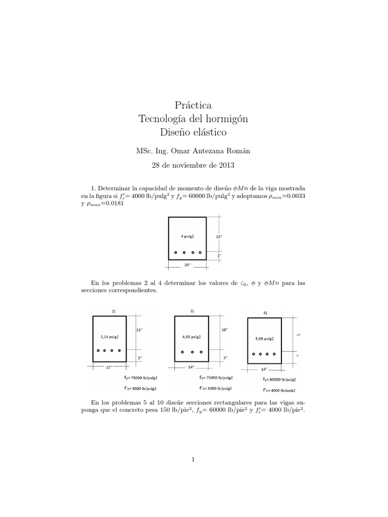 1. Determinar la capacidad de momento de dise no M n de la viga mostrada en la gura si fc = 4000 lb/pulg2 y fy = 60000 lb/pulg2 y adoptamos min =0.0033 y max =0.0181