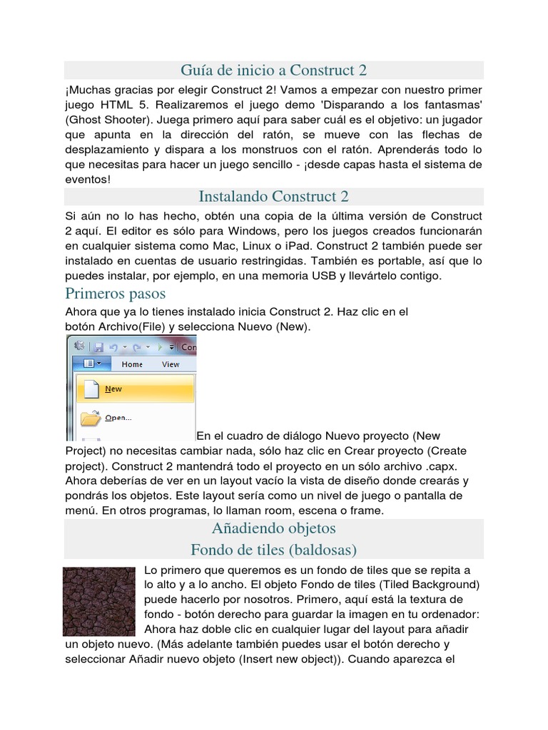 como funciona. Bien! Si tienes algn problema o piensas que alguna parte de este tutorial puede ser mejorada, deja un comentario o un mensaje en el foro. Veresmo que podemos hacer! Por ltimo, si te gusta este tutorial y piensas que a algn conocido tambin le puede gustar Construct 2, por qu no le envas un enlace a este tutorial? Sin duda, no le har dao :)