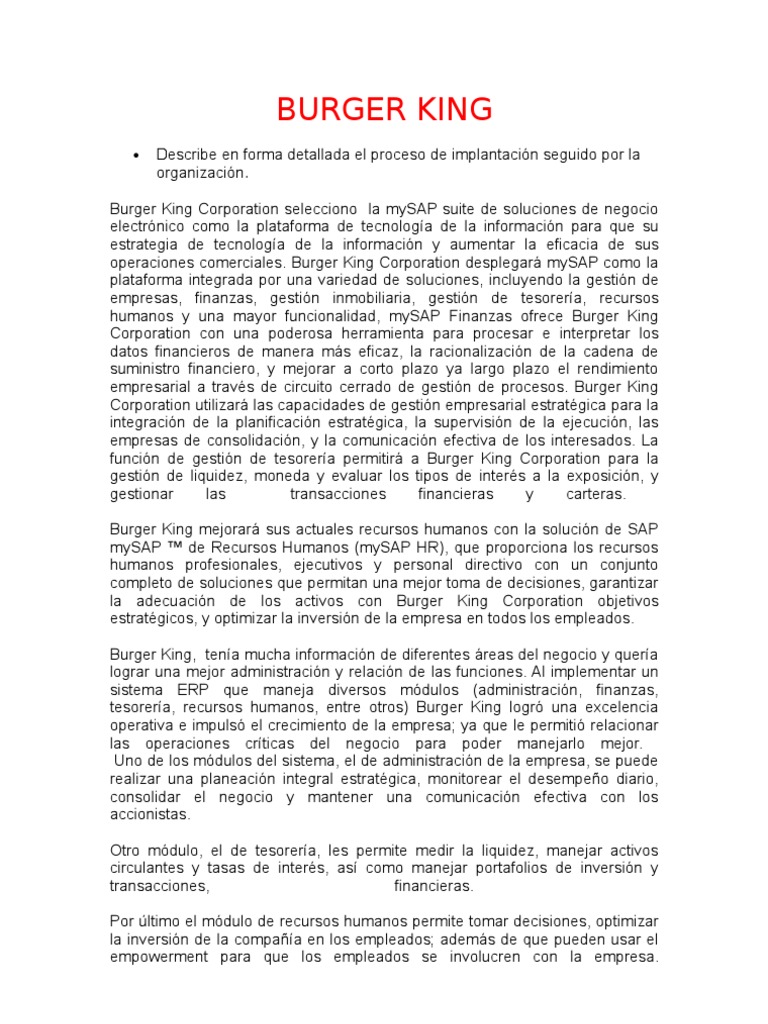 humanos y una mayor funcionalidad, mySAP Finanzas ofrece Burger King