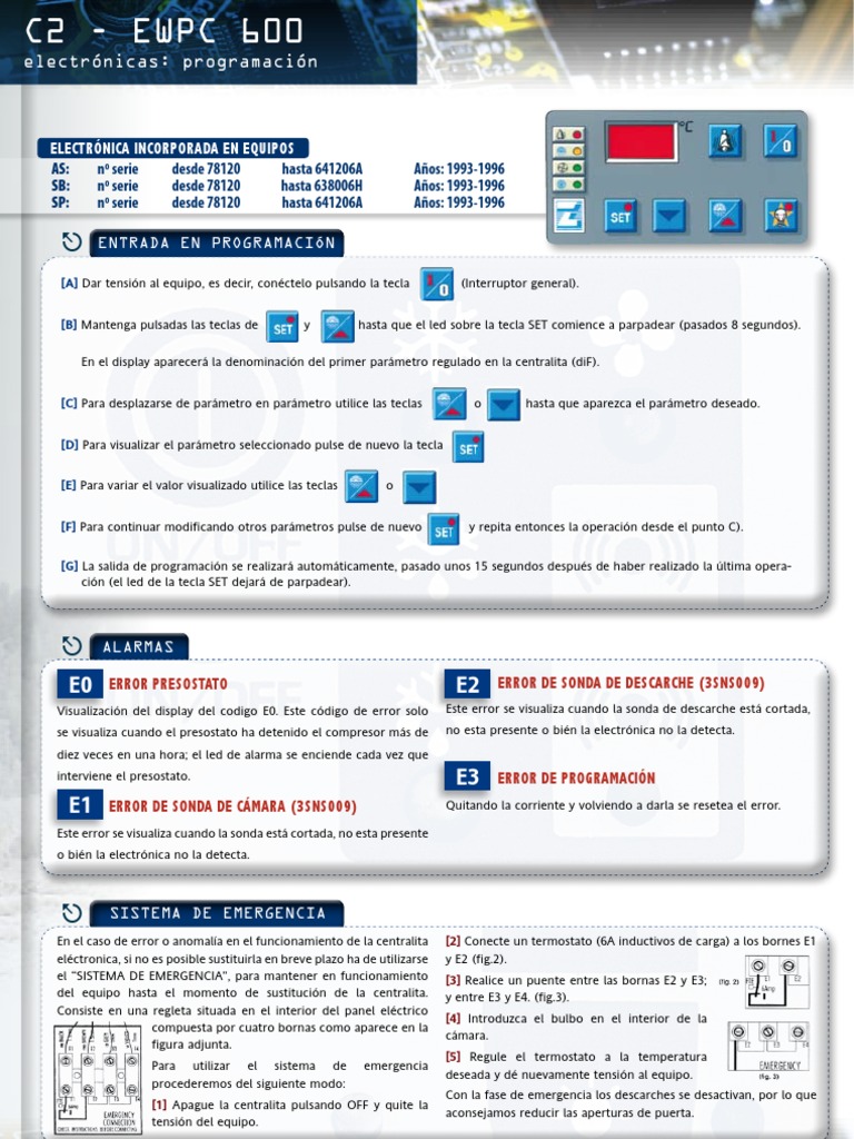 002 Alarma máxima temperatura o bien la electrónica no la detecta. se bloquean. Para desbloquear la electrónica