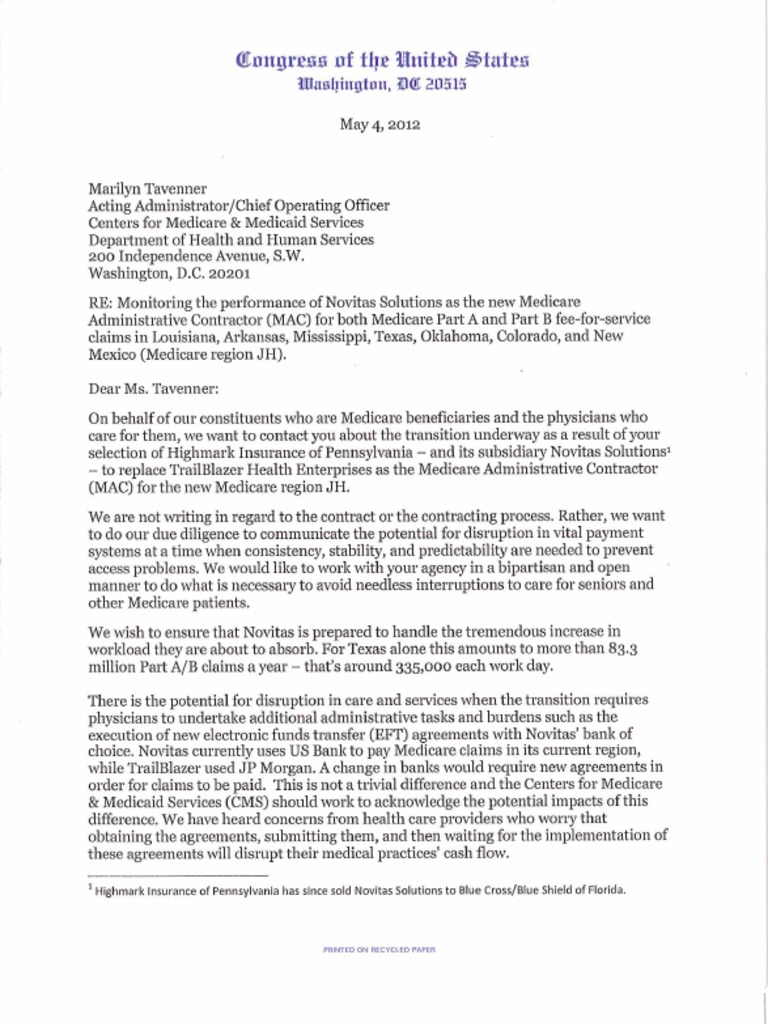 May 4, 2012: Rep. John Culberson joined Rep. Michael Burgess, MD on a letter to the acting CMS Administrator regarding the transition to a new contractor for the Medicare region that include…Descripción completa