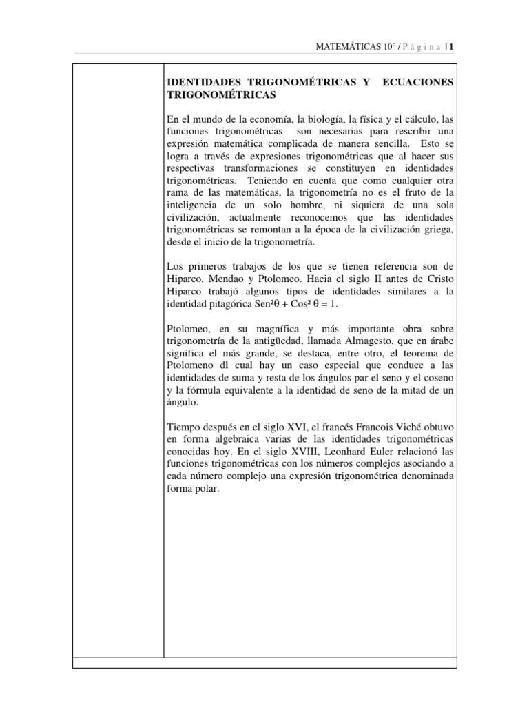 IDENTIDADES TRIGONOMÉTRICAS Y ECUACIONES