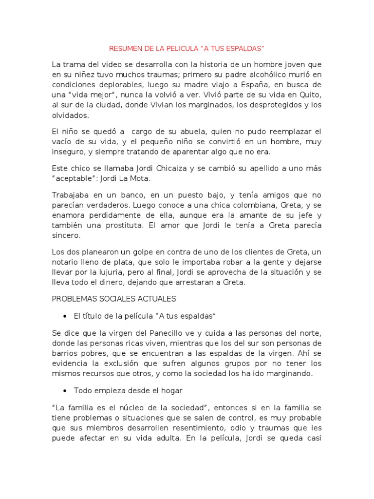 RESUMEN DE LA PELICULA A TUS ESPALDAS