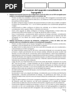 El error de cierre de una poligonal: es la discrepancia entre los valores obtenidos por la observacin y los previamente conocidos. Es consecuencia de los errores cometidos en la medida de los ngulos y distancias. Cuando se miden los ngulos internos de una poligonal cerrada es posible efectuar un control de cierre angular, dado que la suma de los ngulos interiores de un polgono es igual a 180 x (n 2). El error angular de la poligonal : El error de cierre angular es igual a la diferencia de 180 (n 2) menos la sumatoria de los ngulos interiores e = 180 ( n 2) aint El error de cierre angular debe ser menor o igual que la tolerancia. Por tolerancia se entiende el mayor error permitido (Emax). La tolerancia depende de los instrumentos que se utilizan y los mtodos de levantamiento que se aplican. Una vez obtenido el error de cierre angular menor o igual que la tolerancia se procede a compensar los ngulos. Una forma de compensar los ngulos es por partes iguales. Para obtener la correccin angular c, se divide el error por el nmero de vrtices C = e/n TOPOGRAFIA 1 Obtenida la correccin, se suma o se resta de acuerdo al signo del error, a cada uno de los ngulos En funcin de las caractersticas del instrumento, del nmero de tramos y de la longitud de stos, existe una tolerancia o error mximo permitido para los ngulos y las coordenadas. Cuando la poligonal no puede terminar en un punto conocido, se puede cerrar en el punto de partida para poder comprobar las observaciones. Representacin grfica: Luego de compensar los ngulos y promediar las medidas de las distancia de los lados se puede representar la poligonal. Establecida la escala de trabajo, se representa la primera estacin y el primer lado, en forma arbitraria o marcando su acimut. Se utiliza un crculo graduado y un escalmetro. Se representa estacin por estacin hasta llegar al ltimo vrtice que debera coincidir con el