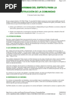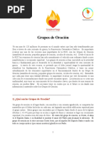 cursos que ofrece el movimiento en su Comunidad. La experiencia perenne de ser lleno del Espritu Santo lo mantendr en el camino a la santidad, reflejndose en el compromiso de vida: sacramental, de oracin personal y comunitaria, familiar, social, y de servicio a la comunidad; sea en el Movimiento en algn apostolado parroquial. Despus de un tiempo razonable de perseverancia en sus cursos de formacin bsica, se le invitar a participar en un retiro para nuevos servidores donde se le explicar ampliamente lo que es la Renovacin para invitarlo a integrarse a alguno de los Equipos de servicio apostolados parroquiales. 9.2.2 En los Grupos de Oracin. Aqu el renovado vivir nuevas y continuas experiencias del Espritu Santo -ya que en los pequeos Grupos de Oracin, el compromiso de vida con Dios y los hermanos es ms ntimo-, llegando a crear verdaderas pequeas comunidades eclesiales de oracin y servicio, poniendo en prctica la caridad. Desarrollar su vida de oracin e integracin a la comunidad de una manera ms profunda, su continua participacin en el Grupo de oracin le afianzar en el camino a la santidad, adems descubrir -a la luz del Espritu Santo-, el carisma que Dios le ha concedido para ponerlo al servicio de la Comunidad, es en este momento cuando el compartir el caminar diario de la Vida en el Espritu se convierte en un acto constante de fe, esperanza y caridad, testificando en medio de su hogar y su realidad concreta que slo Jesucristo es el Seor. El crecimiento y compromiso de vida a la santidad es una tarea que requiere de una formacin integral: constante, sistemtica y progresiva; por ello el renovado deber buscar los cursos apropiados -que ofrece la Iglesia y el Movimiento-, para no detenerse en el camino emprendido.