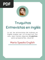 Alguna vez tiene que realizar entrevistas de trabajo en ingls, o podra necesitar ser entrevistado para un empleo, en ingls? En ese caso, estas son algunas rases !tiles, en orma de di"logo, con varias preguntas # respuestas$ LLEGADA Pregunta: %&ello ' good morning ' a ternoon( )&ola ' buenos das ' buenas tardes* +ice to meet #ou( ),n placer conocerlo* -.an/s or coming .ere toda#01 )2racias por venir .o#* Respuesta: %3t4s ver# nice to meet #ou, too( )3gualmente, un placer conocerlo* And t.an/ #ou or inviting me along toda#01 )5 gracias por invitarme a pasar .o#* INFORMACIN SO RE EL EMPLEO AC!"AL P: %6o, tell me a bit about #oursel 0 )7ueno, cunteme un poco sobre usted* 8.# do #ou 9ant to leave #our present job? ):or qu desea dejar su empleo actual?* ' 8.# do #ou eel it4s time to leave #our current job?1 ):or qu cree que es momento de dejar su empleo actual?* R: %8ell, 34ve been 9or/ing at );* or t.e last ) our* #ears and 3 li/e it t.ere, but no9 3 eel read# to ta/e on more c.allenging 9or/01 )7ueno, .e estado trabajando en );* los !ltimos )cuatro* a<os # me gusta, pero a.ora me siento preparado para asumir un trabajo m"s desa iante* P: %8.at does #our current job involve e=actl#? )>u implica e=actamente su empleo actual?* R: %34m responsible or 000 )6o# responsable de 000* ' At t.e moment, 34m mostl# involved 9it. 000 )' :or el momento, me ocupo principalmente de 000* ' ?# position involves 000 )?i cargo involucra 000* ' 34m in c.arge o 0001 )' Esto# a cargo de*