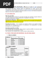 FROM VENTA RIGHT OUTER JOIN PRODUCTO P ON P.ID_PRODUCT=[Link] -SELECT [Link], [Link] FROM VENTA V FULL OUTER JOIN PRODUCTO P ON P.ID_PRODUCT=[Link] -- SUMA DE REGISTROS SELECT DESCRIPCION, SUM(PRE_UNI*[Link]) CANTIDAD TOTAL FROM VENTA, PRODUCTO WHERE ID_PRODUCT=PRODUCTO GROUP BY PRE_UNI, DESCRIPCION -- CLAUSULAS DE SELECCION /* COMPUTE: REALIZA OPERACIONES DE SUBTOTAL SOBRE EL CONJUTNO DE DATOS DEVUELTO TOP: DEVUELVE LOS REGISTROS ESPECIFICADOS DE UN NUMERO AL INICIO DEL CONJUNTO DE SELECCION WITH CUBE: ANEXA UNA FILA DEL RESULTADSO ESPECIFCANDO EL SUBTOTAL DE LA OPERACION ESTANDAR GROUPING: COLOCA UNA COLUMNA MAS AL RESULTADO Y ASIGNA EL VALOR A LOS REGISTROS ROLLUP: ES SIMULAR A WITH CUBE CON LA DIFERENCIA DE GENERAR UN SUBCONJUNTO */ -- EJEMPLO CON COMPUTE SELECT NOMBRE,APATERNO, AMATERNO, DATEDIFF(YEAR,FECHA_DE_NACIMIENTO, GETDATE()) AS EDAD FROM CLIENTE ORDER BY NOMBRE DESC COMPUTE AVG(DATEDIFF(YEAR,FECHA_DE_NACIMIENTO,GETDATE())) -- OTRA VARIACION CON SUM SELECT NOMBRE,APATERNO, AMATERNO, DATEDIFF(YEAR,FECHA_DE_NACIMIENTO, GETDATE()) AS EDAD FROM CLIENTE ORDER BY APATERNO DESC COMPUTE SUM(DATEDIFF(YEAR,FECHA_DE_NACIMIENTO,GETDATE()))