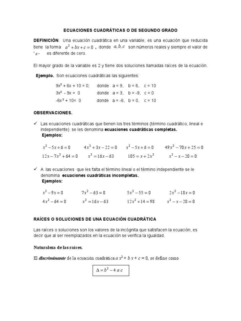 independiente) se les denomina ecuaciones cuadráticas completas.