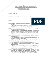 Works Widdowson, Henry G. "An Applied Linguistic Approach to Discourse Analysis." Unpublished PhD Thesis, Dept. of Linguistics, University of Edinburgh, 1973. - - -. "Stylistics." In The Edinburgh Course in Applied Linguistics. Ed. S. Pit Corder and J. P. B. Allen. Oxford: Oxford UP, 1974. - - -. Stylistics and the Teaching of Literature. London: Longman, 1975. - - -. Teaching Language as Communication. Oxford UP, 1978. - - -. "Discourse and Text." Paper at the Ealing College of Further Education Conference on "The Reading Skill." 1979. - - -. "Rules and Procedures in Discourse Analysis." In Conversation and Discourse. Ed. T. Myers. Edinburgh: Edinburgh UP, 1979. 61-71. - - -. "Models and Fictions." Applied Linguistics 1.2 (1980): 165-70. - - -. "The Conditional Presence of Larkin's Mr Bleaney." 1982. In Issues in Contemporary Literary Theory. Ed. Peter Barry. Houndmills: Macmillan, 1987. 168-73.* - - -. Explorations in Applied Linguistics. Oxford: Oxford UP, 1984. - - -. Explorations in Applied Linguistics 2. Oxford: Oxford UP, 1984. - - -. "Poetry and Pedagogy." In Linguistics in Context: Connecting Observation and Understanding. Ed. Deborah Tannen. Norwood (NJ): Ablex, 1988. 185-97. - - -. "Knowledge of Language and Ability for Use." Applied Linguistics 10 (1989): 128-37. - - -. Aspects of Language Teaching. Oxford: Oxford UP, 1990. - - -. "The Description and Prescription of Language." In Georgetown University Round Table on Languages and Linguistics 1991 . Ed. J. Alatis. Washington, D.C.: Georgetown UP, 1991. 11-24. - - -. Practical Stylistics. Oxford: Oxford UP, 1992.*