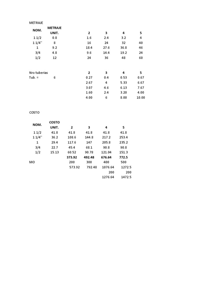 Nro tuberias