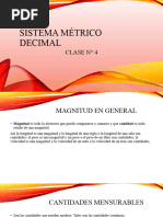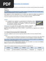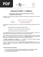 Este trabajo se origin por las dificultades que algunos estudiantes, de cualquier nivel, tienen para trabajar con magnitudes en lo que se refiere a encontrar equivalencias realizar reducciones y operar en general. Naci en un curso de fsica pero puede ser aplicado a cualquier asignatura que requiera operar con magnitudes y que en dicha operatoria se generen conflictos como los descriptos. Magnitudes y unidades Para describir los fenmenos fsicos no alcanza solo con la descripcin cualitativa si no que es menester recurrir a un concepto cuantitativo, esto es expresarlos como una magnitud. Recordemos que se denomina magnitud a todo fenmeno capaz de ser medido, es decir expresarlo como una cantidad numrica. Lord Kelvin, un cientfico ingls, deca con mucha conviccin refirindose a los fenmenos fsicos: "solo se puede hablar con propiedad , de aquello que se mide" . Medir es comparar cantidades de la misma magnitud. Por ejemplo cuando medimos una longitud comparamos la distancia desconocida con otra que ya conocemos, y que ha surgido de una cantidad convenida de longitud denominada patrn. Un patrn se adopta por convencin, esto significa que un grupo de personas con conocimientos y experiencia resuelve acordar que: una cierta cantidad a la que llamamos patrn y cuyo nombre (por ejemplo el "metro") origina la unidad de referencia, ser con quien deber ser comparada cualquier otra porcin de magnitud que queramos cuantificar. En el caso de la longitud, el patrn es una cantidad que todos conocemos denominada metro. Una vez establecida la unidad patrn se acuerdan los submltiplos y mltiplos, es decir cantidades menores y mayores de la unidad en cuestin. Internacionalmente se emplea el sistema mtrico decimal el cual como todos sabemos "va de diez en diez". Esto significa que se van tomado sucesivamente porciones de unidad 10 veces mas chica en el caso de los submltiplos, o 10 veces mas grandes en el caso de los mltiplos. De ah que si dividimos el metro en diez partes, cada parte se llame decmetro (simbolizado con dm), en consecuencia un metro contendr diez decmetros, lo cual en smbolos se escribe: 1 m = 10 dm. Si el decmetro se divide en diez partes esto significa que el metro queda dividido "diez veces diez" es decir que el metro se divide en cien partes y cada parte se llama centmetro, luego en un metro contiene cien centmetros es decir: 1 m = 100 cm. La milsima parte del metro se denomina milmetro y entonces un metro contiene mil milmetros o sea: 1 m = 1000 mm. 1 m = 10 dm = 100 cm = 1000 mm 1 m = 10 dm = 102 cm = 103 mm Un razonamiento similar conduce a los mltiplos de la unidad patrn: diez metros corresponden a un decmetro es decir 10 m = 1 dam . Cien metros corresponden a un hectmetro y mil metros a un kilmetro 10 m = 1dam 100 m = 1 hm 1000 m = 1 km Podemos observar que se utilizan prefijos para denotar las proporciones de submltiplos y mltiplos y estos prefijos se generalizan para cualquier unidad. De ah que, por ejemplo, a la milsima parte del segundo se la llame milisegundo, luego, un segundo contiene mil milisegundos es decir: 1 s = 1000 ms En el siguiente cuadro se indican los prefijos y sus correspondencias decimales.