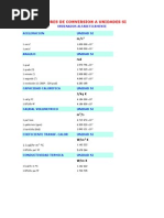 Una conversin de unidades consiste en expresar una cierta cantidad de magnitud que est dada en una cierta unidad, en otra ya sea del mismo sistema de medida o en otro. Para ello es necesario conocer las equivalencias entre las unidades en cuestin. Por ejemplo; sea una cierta cantidad de longitud, digamos 58 cm y se desea: a) expresarla en metros b) expresarla en pulgadas Comencemos con el punto a) Sabemos que:
