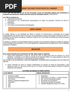 Determinar la presencia de factores mdicos relacionados con el reporte desfavorable del embarazo (hipertensin). Revisar el historial obsttrico para valorar factores de riesgo de pre eclampsia y del feto. Reconocer los factores demogrficos y sociales (edad, raza, nivel Instruir a la paciente a cerca de la importancia de los cuidados prenatales durante todo el embarazo. Invitar y animar al padre a participar en los cuidados prenatales y asistan a clases prenatales. Vigilar las ganancias de peso durante el embarazo. Comprobar el ajuste psicosocial de la paciente y la familia durante el embarazo. Observar presencia de edema. Explorar los reflejos osteotendinosos. Medicin de fondo uterino y comparar con edad gestacional. Asesorara a la paciente a cerca de los cambios de la sexualidad durante el embarazo. Determinar el sistema de apoyo social. Ensear a la paciente tcnicas de automonitorizacin de: sus signos vitales, glucosa en sangre, actividad uterina, presencia de edema, etc. Instruir a la paciente el crecimiento y desarrollo fetales. Ensear a la paciente las estrategias de autoayuda para aliviar las molestias comunes del embarazo. Instruir a la paciente en los efectos dainos del uso del tabaco. Dar a los padres la oportunidad de escuchar los latidos cardiacos del feto. Dar oportunidad a los padres de ver por ecografa la imagen del feto. Remitir a la paciente a las clases de preparacin para el parto. Ensear y promover en la paciente tcnicas de autocuidado para aumentar las posibilidades de un resultado saludable, como la dieta, modificacin de actividades, importancia del control prenatal, precauciones sexuales, etc.)