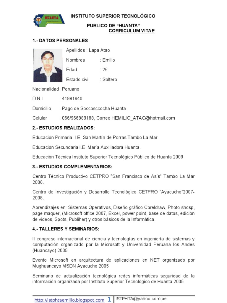 http://istphtaemilio.blogspot.com 1 ISTPHTA@yahoo.com.pe