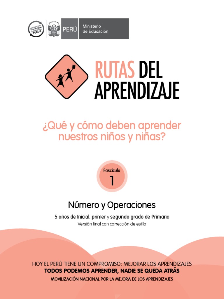 Las prcticas docentes repetitivas, centradas en algoritmos de operaciones con nmeros, las estrategias metodolgicas que inciden en la reproduccin de procedimientos previamente aprendidos y la falta de una ruta clara por la cual transiten bsica y necesariamente los aprendizajes de Matemtica de los estudiantes son algunas de las causas de la situacin actual de los bajos niveles de logro en el rea. La escuela debe asegurar el desarrollo de capacidades bsicas de los nios del II y III ciclo de la EBR, focalizadas en las siguientes: - Capacidades para la comprensin del sentido numrico, evidenciadas en la comprensin y manejo de la estructura del sistema numeracin decimal, operaciones y relaciones numricas, en la formulacin de proposiciones y en el desarrollo de estrategias para la resolucin de situaciones problemticas. - Capacidades para la orientacin en el espacio y la medida, evidenciadas en el adecuado manejo espacial, identificacin, interpretacin y representacin grfica de figuras y objetos. - Capacidades para la organizacin de la informacin, evidenciadas en la adecuada organizacin e interpretacin de datos estadsticos presentados en tablas y grficas. El presente documento est dirigido al docente, como recurso de apoyo al desarrollo de los procesos pedaggicos del rea, puesto que contiene los aprendizajes prioritarios concretados en capacidades a desarrollar, con sus respectivos indicadores, y en estrategias metodolgicas y de evaluacin de los aprendizajes. Este fascculo es parte de una coleccin en el rea de matemtica y se denomina Nmero y Operaciones; luego se irn desarrollando los dems organizadores del rea. En esta primera entrega se atender el organizador referido a Nmero y Operaciones. El presente fascculo consta de las siguientes secciones: 1. Introduccin 2. Qu entendemos por aprender matemtica? 3. Qu deben aprender nuestros nios con respecto a los nmeros y a las operaciones? Cmo podemos facilitar estos aprendizajes? 4. Y, ahora, cmo evaluamos lo que aprenden nuestros nios?