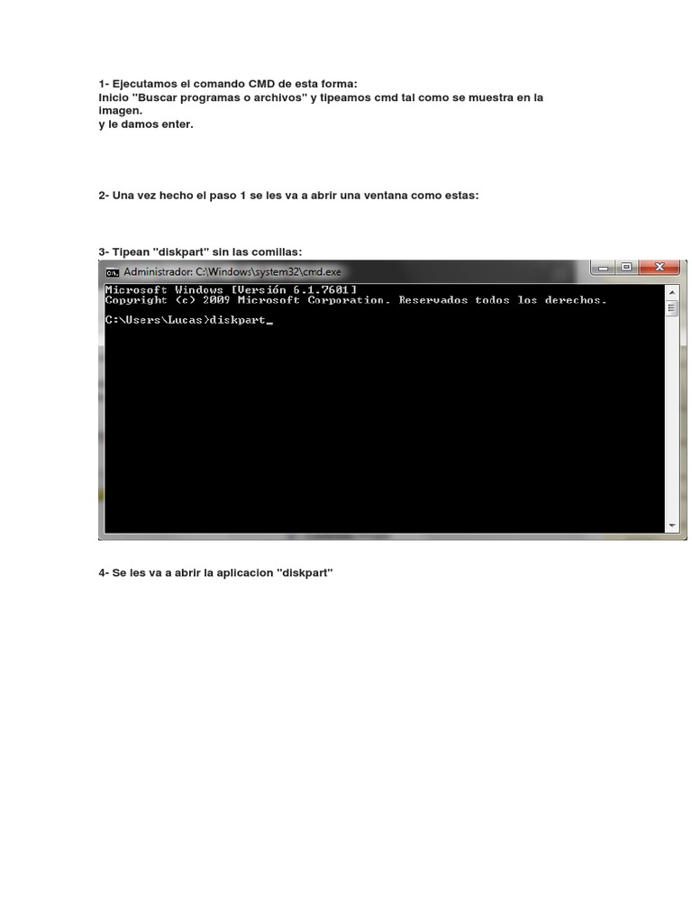 11- ahora lo que vamos a hacer es formatear el pendrive para eso tipeamos "format fs=fat32 quick" SIN COMILLAS RECUERDEN ESO SIEMPRE.