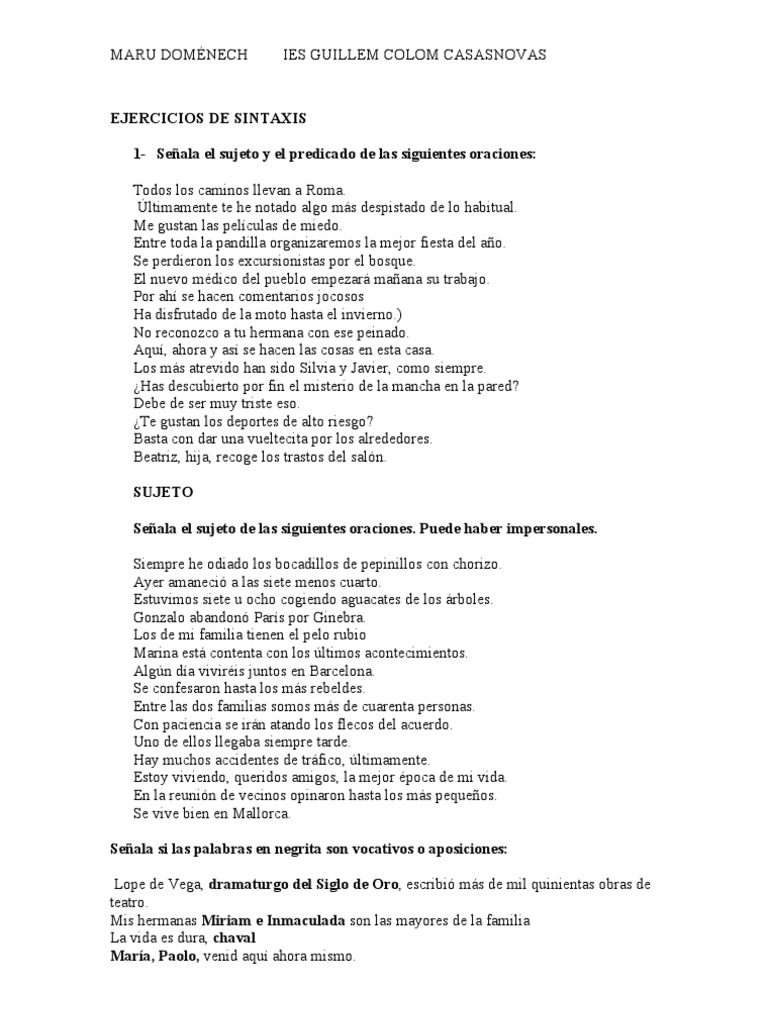 EJERCICIOS DE SINTAXIS