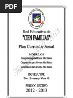 3er bimestre 2. Taller de ensamblaje y configuracin de computadoras. 2.1. Introduccin 2.2. Tipos de arquitectura 2.3. Partes de la computadora (t. madre, ram, HHDD, etc.) 2.4. Armado del equipo 2.5. Instalacion de software 2.6. Mantenimientos preventivo y correctivo. 2.7. Practicas. 4to bimestre 1. Redes(sugerencia) 2. Introduccin a Redes 3. Medios de conexin a. Fsico b. Cable de red 4. Inalmbrico a. Wi-fi 5. Dispositivos a. Router b. Switch c. Hub 6. Cables de Red a. Categora de cables UTP b. Conectores RJ-45 c. Elaboracion de cable de Red 7. Configuracin de Red 8. Conexin entre dos pcs a. Protocolo TCP/IP 9. Edicin de videos y audios(sugerencia)