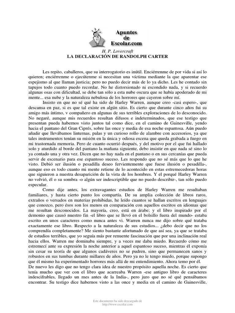 Lovercraft LA DECLARACIN DE RANDOLPH CARTER
