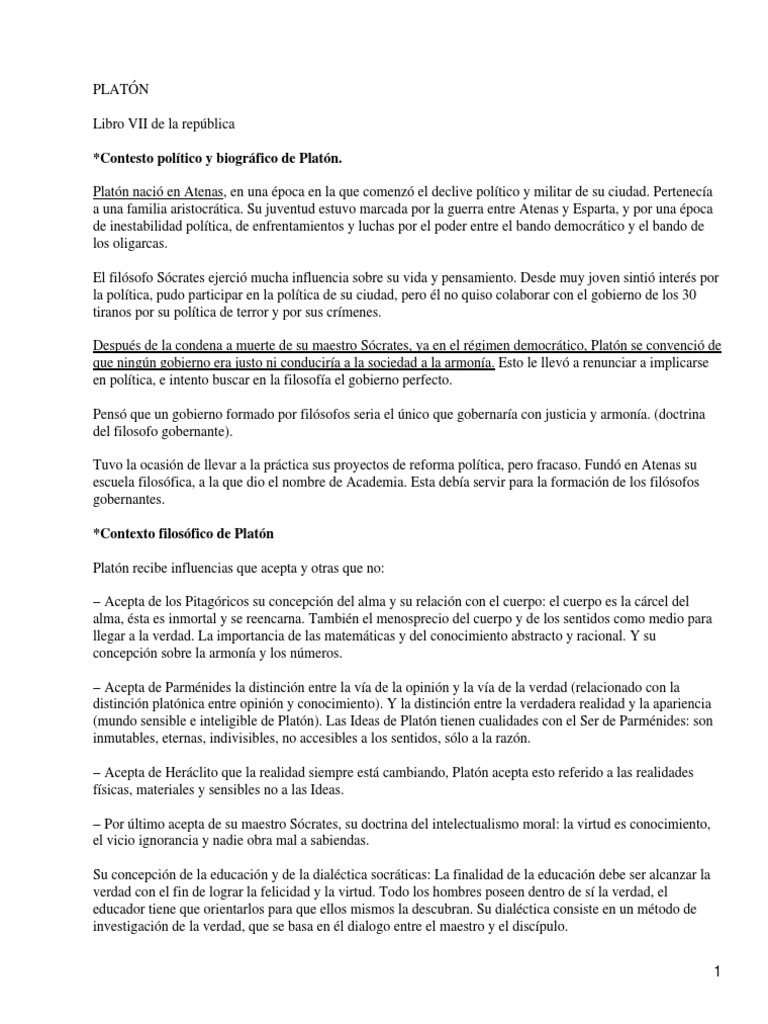 PLATN Libro VII de la repblica *Contesto poltico y biogrfico de Platn.