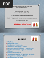 Definimos a los stocks como el conjunto de productos que existen en un establecimiento. Podemos encontrar tres tipos de stocks, segn la disposicin y el lugar en el que se encuentren: Stock de presentacin: Es el que est en el lineal para atender las ventas ms inmediatas, es decir, las que estn a la vista del consumidor. La cantidad depender de la venta media, del tipo de producto y de la poltica comercial que se mantenga.