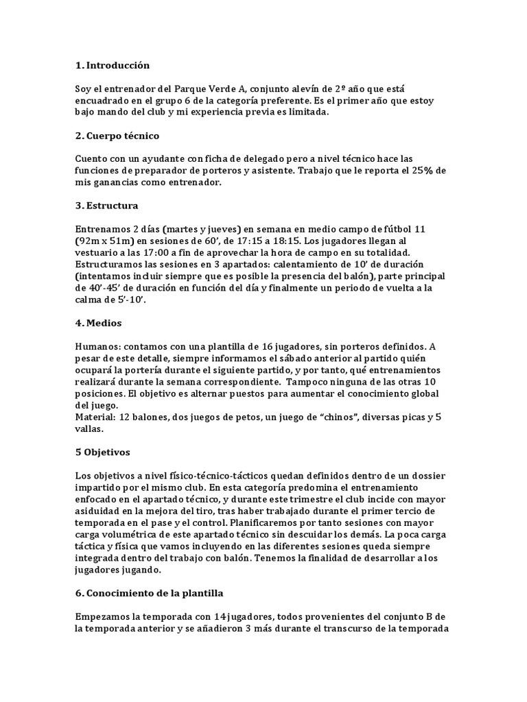1. Introduccin Soy el entrenador del Parque Verde A, conjunto alevn de 2 ao que est encuadrado en el grupo 6 de la categora preferente.