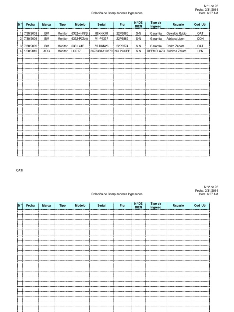 Relacin de Computadores Ingresados N DE BIEN Tipo de Ingreso