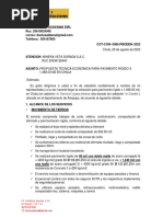 Lima, 17 de Marzo del 2014 Atencin: Ing. David Villacrez [Link] intermedio de la presente nos es grato dirigirnos a ustedes con la finalidad de presentar nuestra propuesta econmica por los trabajos de la fabricacin de una losa de concreto en local ubicado en Huachipa. Mediante este documento estamos ofertando la Mano de Obra. A continuacin se detallan la partida valorizada de la presente oferta: El procedimiento de nuestro trabajo consistir en lo siguiente: Excavacin de terreno para mejoramiento del mismo con material de prstamo (afirmado). Relleno con material de prstamo. Refine, nivelacin y compactacin de terreno. Control de nivel y aislamiento en zcalos (colocacin de tecnoport). Vaciado y reglado de losa segn especificaciones. Acabado con alisadoras segn especificaciones. Al da siguiente se proceder al cortado de juntas de dilatacin y/o juntas de construccin. Posterior al corte se har la entrega de la losa con sus niveles respectivos. Para el sellado de las juntas se recomienda 30 das calendario para su ejecucin, por garanta.