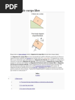 Un diagrama de cuerpo libre es una representacin grfica utilizada a menudo por fsicos e ingenieros para analizar las fuerzas que actan sobre un cuerpo libre. El diagrama de cuerpo libre es un elemental caso particular de un diagrama de fuerzas. En espaol, se utiliza muy a menudo la expresin diagrama de fuerzas como equivalente a diagrama de cuerpo libre, aunque lo correcto sera hablar de diagrama de fuerzas sobre un cuerpo libre o diagrama de fuerzas de sistema aislado. Estos diagramas son una herramienta para descubrir las fuerzas desconocidas que aparecen en las ecuaciones del movimiento del cuerpo. El diagrama facilita la identificacin de las fuerzas y momentos que deben tenerse en cuenta para la resolucin del problema. Tambin se emplean para el anlisis de las fuerzas internas que actan en estructuras Un esquema del cuerpo en cuestin y de las fuerzas que actan sobre l representadas como vectores. La eleccin del cuerpo es la primera decisin importante en la solucin del problema. Por ejemplo, para encontrar las fuerzas que actan sobre una bisagra o un alicate,es mejor analizar solo una de las dos partes, en lugar del sistema entero, representando la segunda mitad por las fuerzas que ejerce sobre la primera. Para disear un elemento estructural o mecnico es necesario conocer la carga que acta dentro de l para asegurarnos de que el material puede resistir esta carga. Las cargas internas pueden determinarse por el mtodo de secciones, seccionando o cortando imaginariamente una seccin perpendicular al eje de la viga. Las cargas internas que actan sobre el elemento quedarn expuestas y se volvern externas en el diagrama de cuerpo libre de cada segmento. Los componentes de la fuerza (N) que acta en perpendicular a la seccin transversal se denominan fuerza Normal. Los componentes de la fuerza (V) que es tangente a la seccin transversal se llama fuerza cortante. El momento de par (M) se conoce como momento flector. El esquema del cuerpo debe llegar solo al nivel de detalle necesario. Un simple esbozo puede ser suficiente y en ocasiones, dependiendo del anlisis que se quiera realizar, puede bastar con un punto. Todas las fuerzas externas se representan mediante vectores etiquetados de forma adecuada. Las flechas indican la direccin y magnitud de las fuerzas y, en la medida de lo posible, deberan situarse en el punto en que se aplican. Solo se deben incluir las fuerzas que actan sobre el objeto, ya sean de rozamiento, gravitatorias, normales, de arrastre o de contacto. Cuando se trabaja con un sistema de referencia no inercial, es apropiado incluir fuerzas ficticias como la centrfuga. Se suele trabajar con el sistema de coordenadas ms conveniente, para simplificar las ecuaciones. La direccin del eje x puede hacerse coincidir con la direccin de descenso de un plano inclinado, por ejemplo, y as la fuerza de rozamiento slo tiene componente en esa coordenada, mientras que la normal sigue el eje y. La fuerza gravitatoria, en este caso , tendr componentes segn los dos ejes, mg \sin(\theta)\, en el x y mg \cos(\theta)\, en el y, donde es el ngulo que forma el plano con la superficie horizontal.