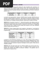 Proporcionar a Gudiela el modelo de Programacin Lineal que determine la dieta ms econmica. 22) Un pequeo taller arma dispositivos mecnicos, ya sea como un producto terminado que entrega al mercado, o como un proceso intermedio para entregar a una gran fbrica. Trabajan 3 personas en jornadas de 40 horas semanales. Dos de estos obreros no calificados reciben $0.4 por hora, y el tercero, un obrero calificado, recibe $0.6 por hora. Los tres estn dispuestos a trabajar hasta 10 horas adicionales a la semana con un salario 50% superior durante este perodo. Los costos fijos semanales son de $800. Los gastos de operacin variables son de $1.0 por hora de trabajo de obrero no calificado y $2.4 por hora de obrero calificado. Los dispositivos mecnicos sin acabar son vendidos a la planta a $6.5 cada uno. El taller tiene un contrato bajo el cual debe entregar 100 de estos dispositivos semanalmente a la empresa. El dueo del taller tiene como poltica, producir no ms de 50 dispositivos a la semana, adicionales a lo establecido en el contrato. Los dispositivos terminados se venden a $15 cada uno sin restricciones de mercado. Se requieren 0.5 horas de obrero no calificado y 0.25 horas de obrero calificado para producir un dispositivo sin acabar listo para entregar a la empresa. Uno de estos dispositivos puede ensamblarse y dejarlo terminado agregndole 0.5 horas de trabajador calificado. Un dispositivo acabado listo para entregar al mercado se puede producir con 0.6 horas de obrero no calificado y 0.5 horas de obrero calificado. Plantear el modelo de programacin lineal que permita responder la consulta: cmo y cunto producir para cumplir el contrato de modo tal que se maximicen las utilidades? 23) Una pequea empresa fabrica dos tipos de partes automotrices, A y B. Compra delgadas lminas de acero que deben ser moldeadas, perforadas y pulidas, como se indica en el cuadro siguiente (en unidades por hora): CAPACIDAD Moldeo Perforado Pulido PARTE A 25/hora 28/hora 35/hora PARTE B 40/hora 35/hora 25/hora