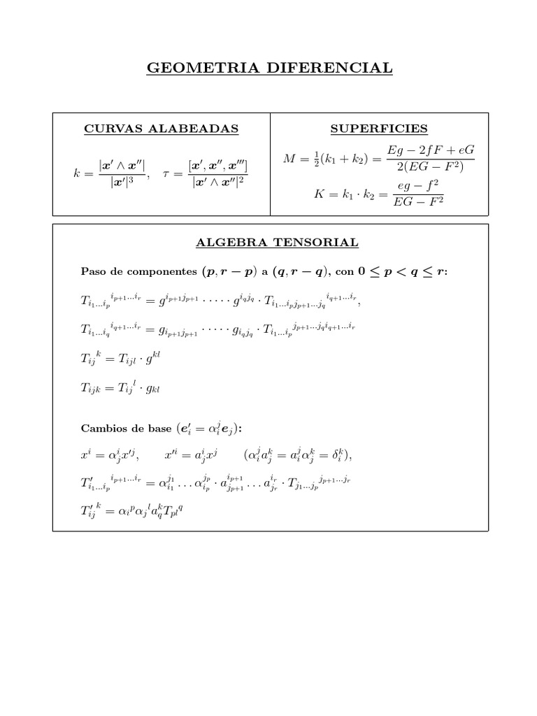 Algunos operadores diferenciales: div v = i v i = v i j 1/2 + i ij v = (det g ) i u ui ui det g v i , det g g ij , uj