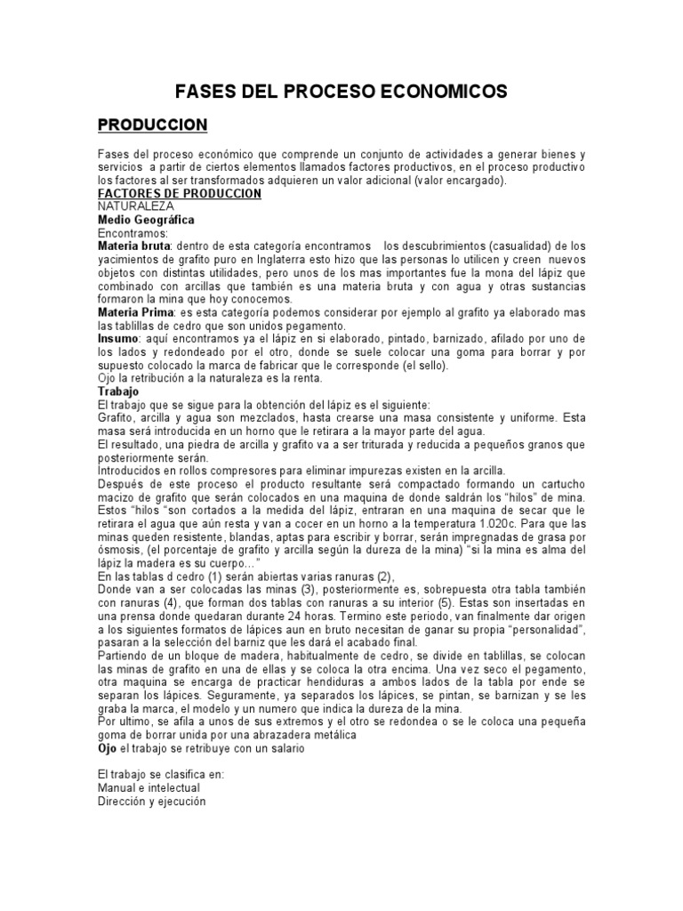 Fases del proceso económico que comprende un conjunto de actividades a generar bienes y