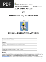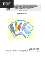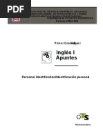 El libro apuntes de ingls para primer grado proveniente de la Direccin General de Materiales Educativos, es un texto que integra contenidos nicamente del primer bloque. Tiene la caracter stica de ser bimodal! esto es, que est" dirigido tanto a los docentes como a los estudiantes! estructura aprendi#a$es conceptuales, actitudinales % procedimentales. &asta el a'o ())*, con la +e,orma en Educacin -ecundaria, se cont nicamente con el .lan % .rogramas de estudio de la asignatura de ingls, ,alt el apo%o bibliogr",ico! lo que se est" elaborando en el ciclo escolar ())/0())1 por la coordinacin nacional. 2 ra # de este escenario de carencia de libros % de construccin de propsitos! adem"s, ante la di,icultad que encierra ense'ar una lengua sin ser especialista en la materia! se con$ug la idea de elaborar un material de apo%o adicional a los apuntes, para que a la par de la edicin de los libros de ingls, se procese un material did"ctico que ,acilite el proceso de la ense'an#a de la lengua inglesa en la telesecundaria oaxaque'a. El apo%o did"ctico que se aporta, consiste en dos materiales! uno es, un paquete de tres 3D que contiene la pronunciacin en ingls de cada sesin de aprendizaje con voces mexicanas expertas en lenguas extranjeras, con especialidad en este idioma ingls . 4os especialistas participantes son egresados de el 3entro de 5diomas de la [Link].9 % tienen la certi,icacin del 543E para impartir el curso -E.a ingls que tambin se coordina a travs de Mesas Tcnicas! otro material es la traduccin de los apuntes: que se puede adquirir , sicamente en engargolado o en disco. Con estos materiales; el auditivo y el texto traducido, el profesor de telesecundaria no especializado en ingls, podr ensear esta asignatura sin caer en la improvisacin. Se recomienda escuchar el C haciendo pausas y !ue los estudiantes repitan el texto en ingls. idcticamente, no es conveniente de"ar correr el C sin hacer los espacios en cada frase, en cada oracin, o en cada idea; por!ue se pierde la posi#ilidad de la e"ercitacin auditiva y ha#lada !ue los educandos re!uieren para lograr los aprendiza"es en ingls. $ing%n material didctico es %til por s& slo. Si se sigue esta metodolog&a, am#os; maestro y alumnos aprendern. Se recomienda no pasar a la siguiente sesin, si no existe dominio de la anterior. ;2 ,ortalecer la ense'an#a del ingls en las telesecundarias con apo%os ob$etivos< Mesa Tcnica de Telesecundarias.