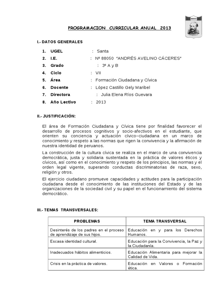 PROGRAMACION CURRICULAR ANUAL 2013