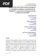 dizaje usadas por los estudiantes; no obstante, como se observa en la Tabla 4, dicha relacin result marginalmente no significativa cuando se control el efecto esta ltima variable. Adems, no existan diferencias estadsticamente significativas de gnero en el rendimiento de los