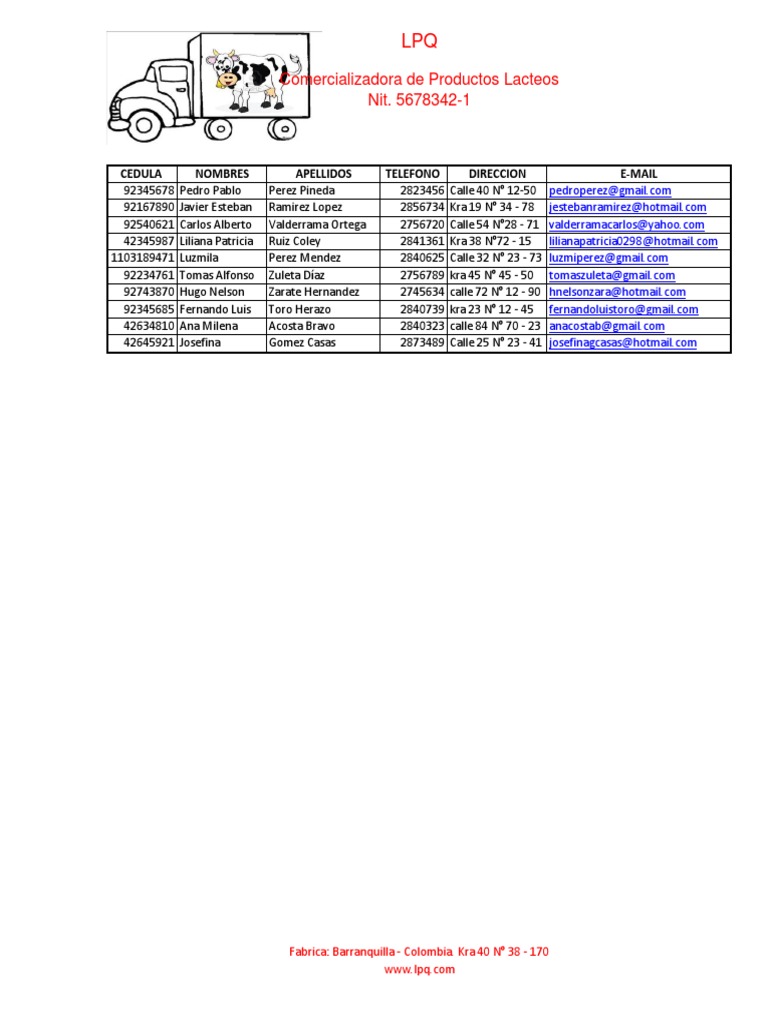 Comercializadora de Productos Lacteos Nit. 5678342-1