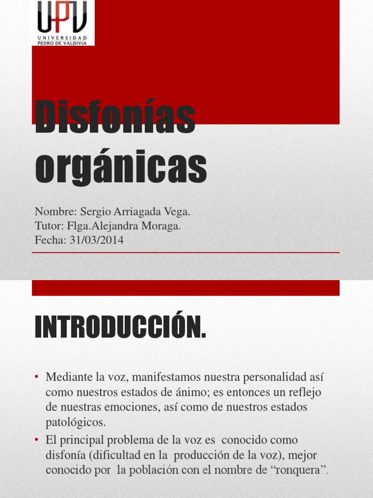 La disfona orgnica es la alteracin de la voz producida por una lesin anatmica en los rganos de la fonacin.