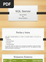 En el presente trabajo abarcaremos sobre los Tipos de datos en SQL. Microsoft SQL es un lenguaje de base de datos que se usa para crear, gestionar y consultar base de datos. En SQL, cada columna, variable, expresin y parmetro tiene un tipo de datos relacionado.