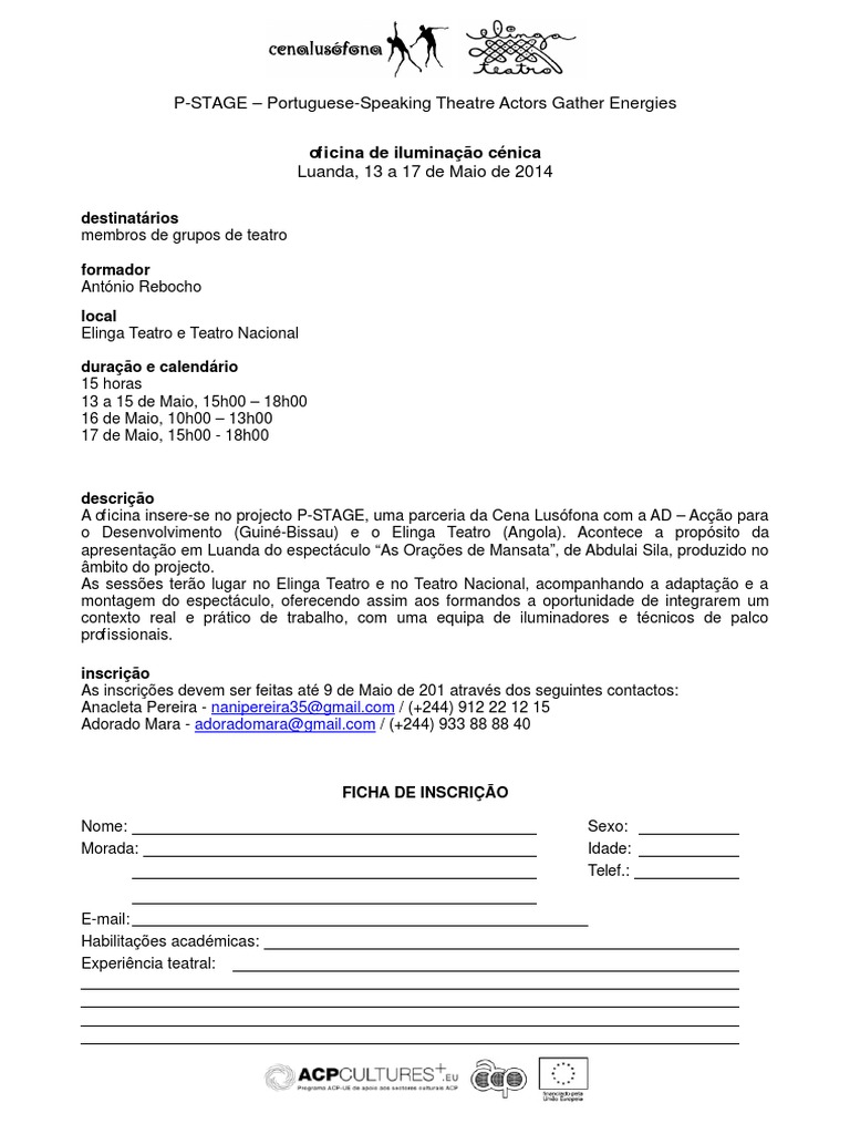 A oficina insere-se no projecto P-STAGE, uma parceria da Cena Lusfona com a AD Aco para