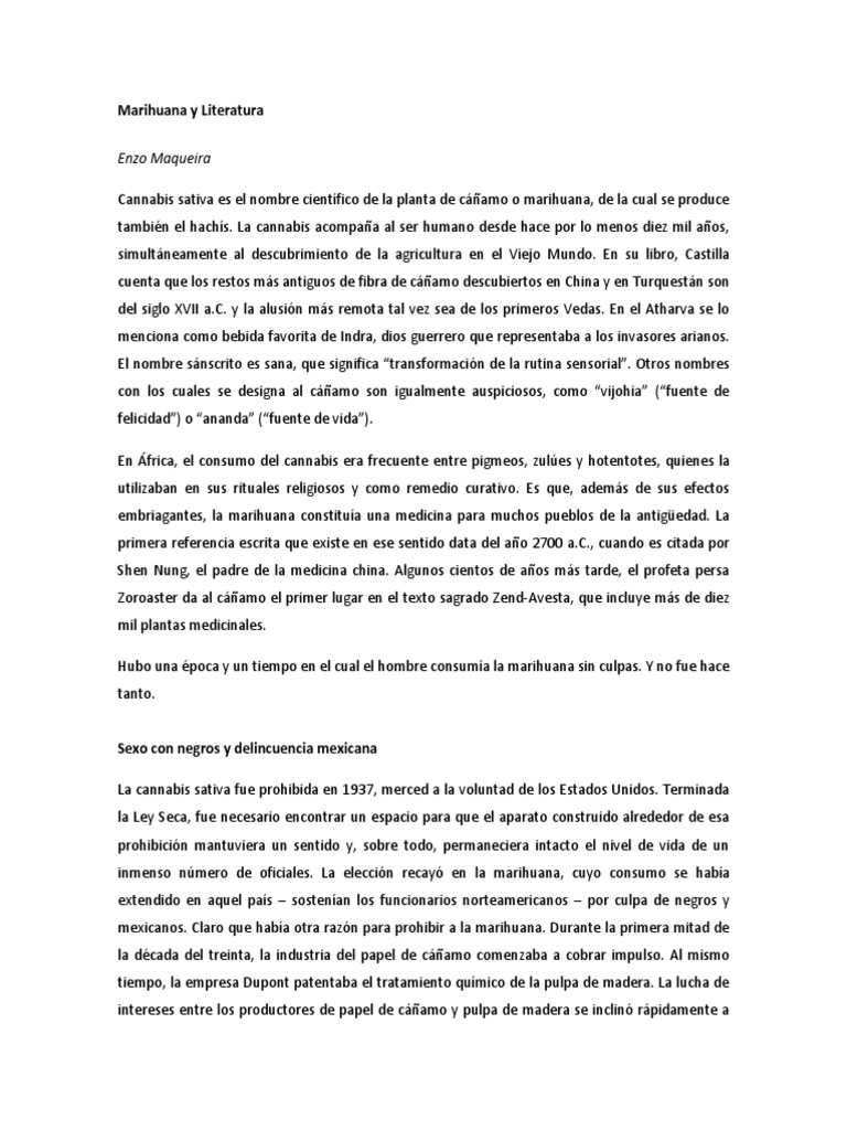 recuadros). Las referencias a la marihuana no abundan y, de las figuras del Olimpo literario