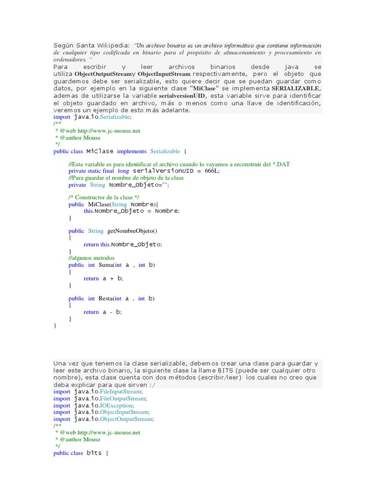 nombre), esta clase cuenta con dos mtodos (escribir/leer) los cuales no creo que