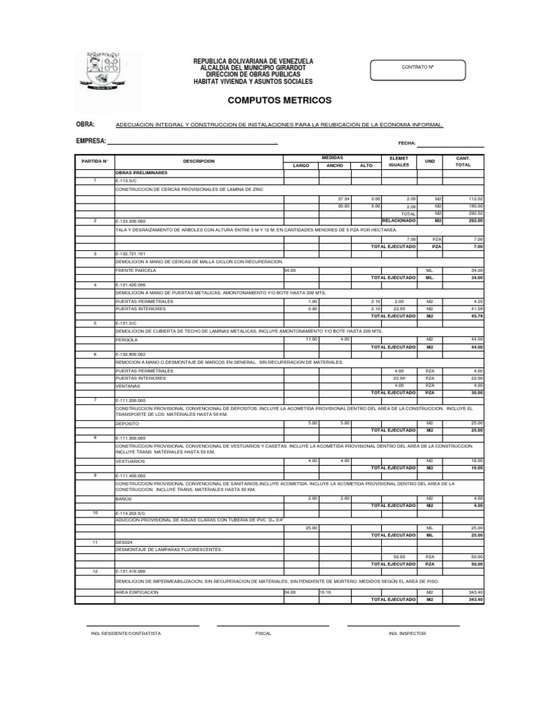 ADECUACION INTEGRAL Y CONSTRUCCION DE INSTALACIONES PARA LA REUBICACION DE LA ECONOMIA INFORMAL.