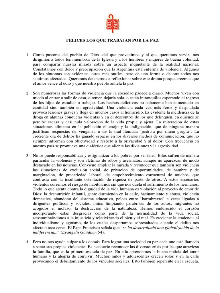Constatamos con dolor y preocupacin que la Argentina est enferma de violencia. Algunos