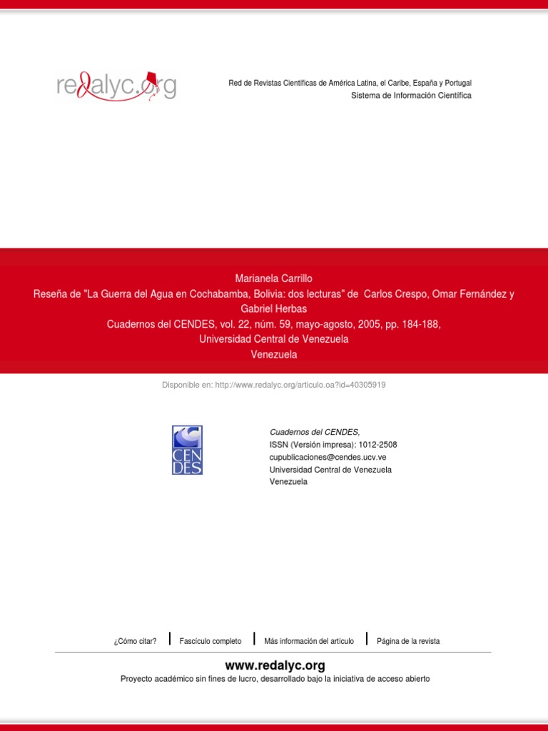 Resea de "La Guerra del Agua en Cochabamba, Bolivia: dos lecturas" de Carlos Crespo, Omar Fernndez y