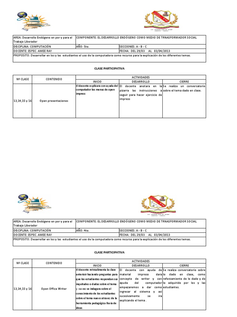 PROPOSITO: Desarrollar en los y las estudiantes el uso de la computadora como recurso para la explicacin de los diferentes temas.