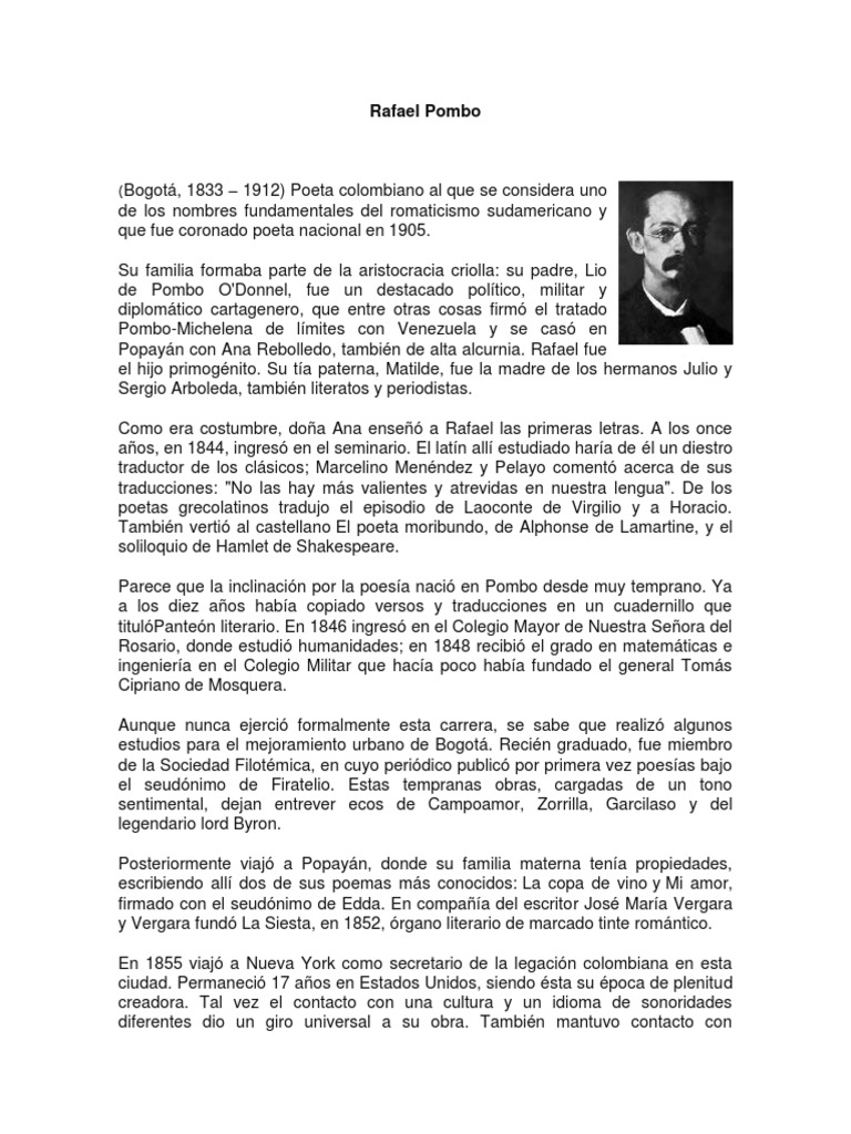 Parece que la inclinacin por la poesa naci en Pombo desde muy temprano. Ya