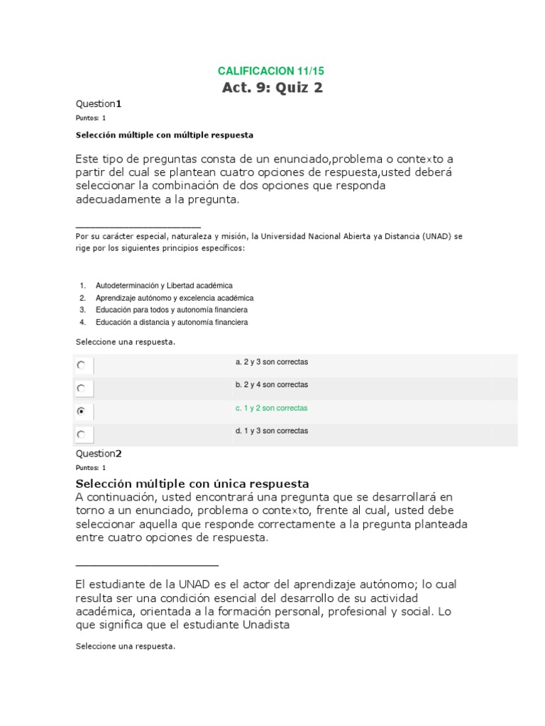 seleccionar aquella que responde correctamente a la pregunta planteada