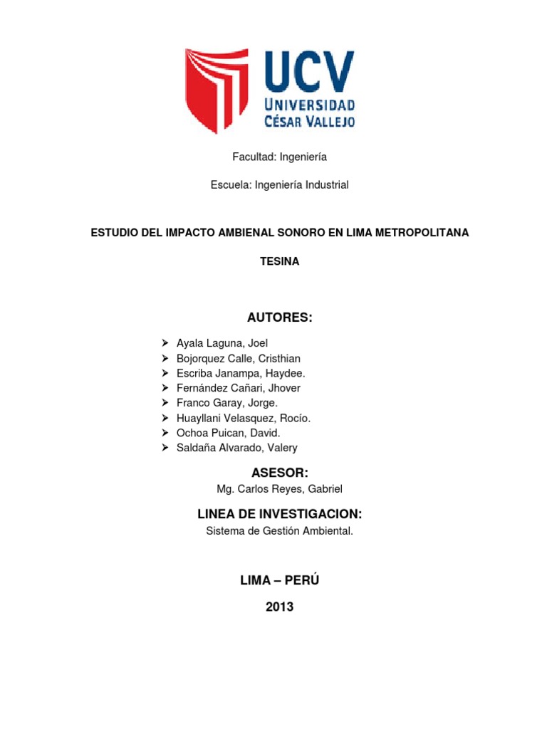 Cesar Vallejo Lima Este, tiene la finalidad de estudiar la contaminacin sonora de la