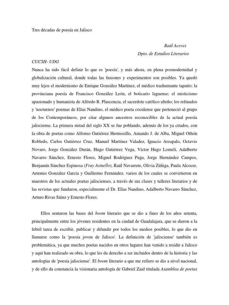 . Aceves, Ral; Recuento de la poesa jalisciense de los ltimos cinco aos, Revista de la