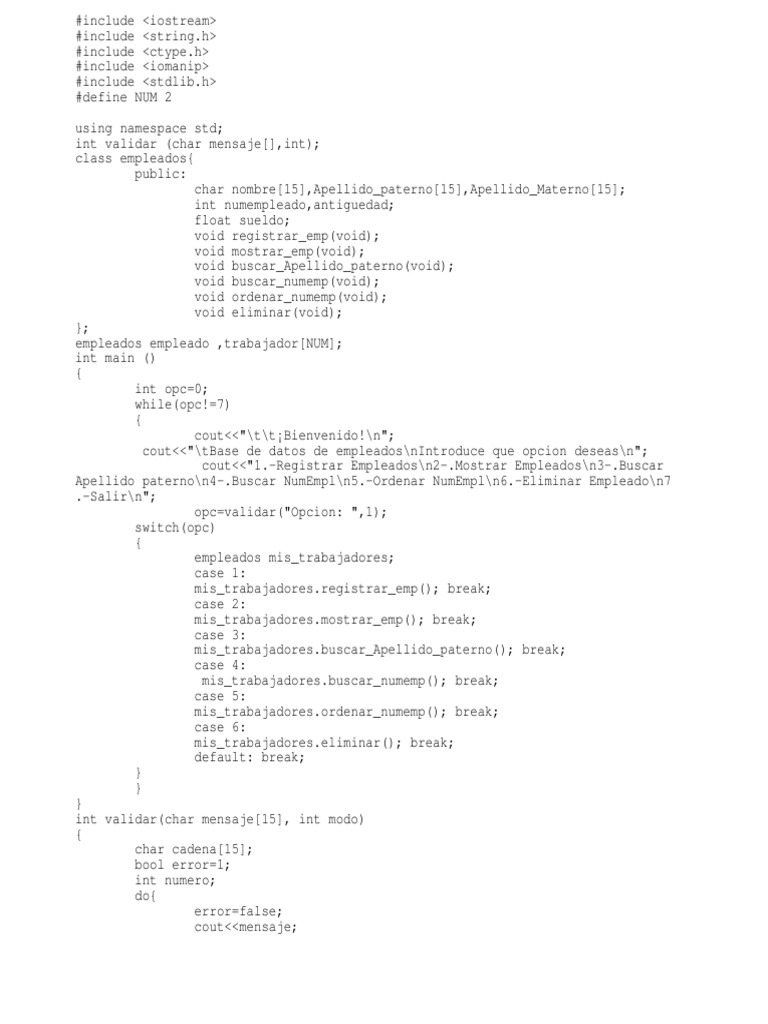 empleados empleado ,trabajador[NUM];